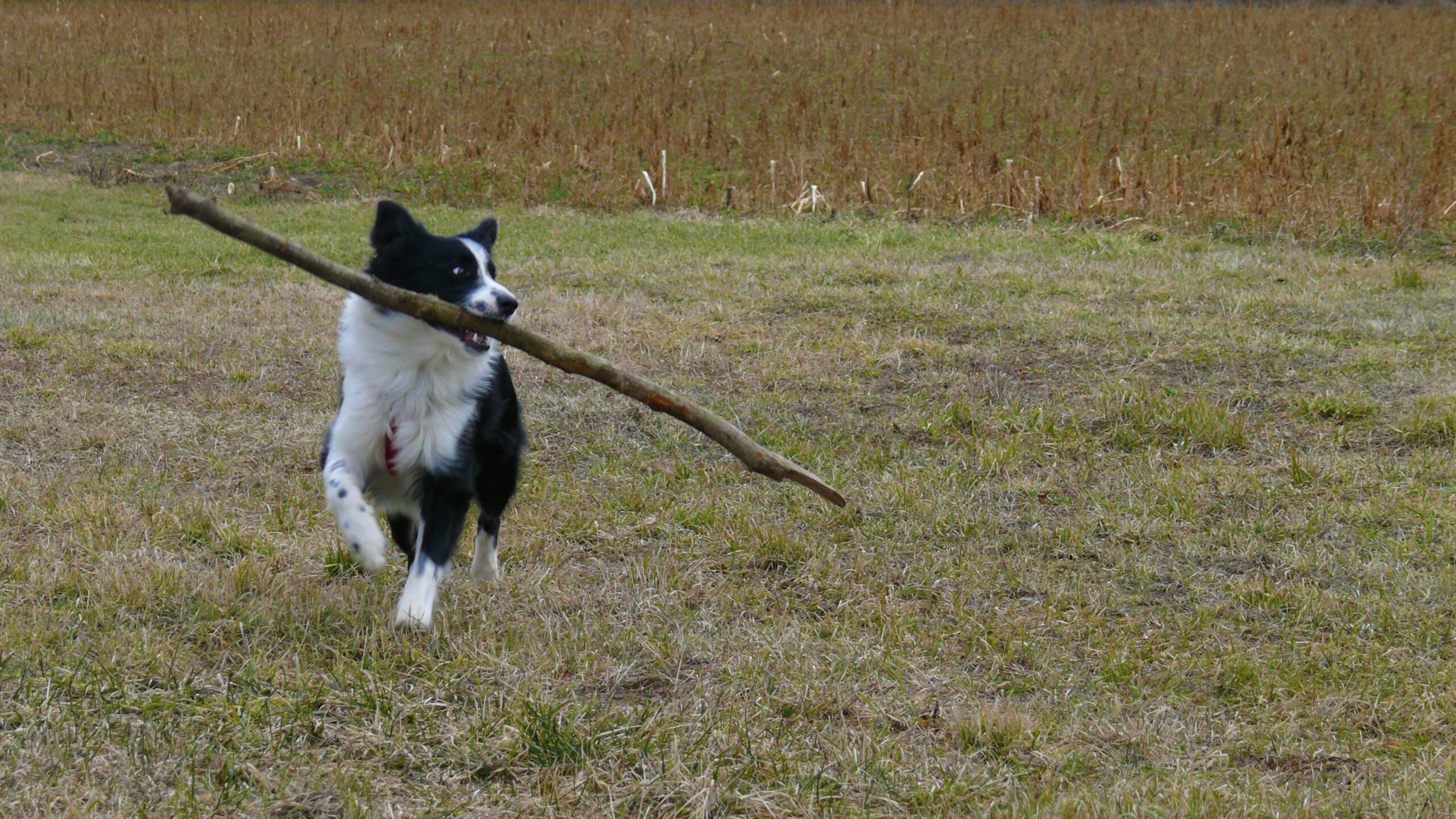 Er könnte das stundenlang tun – doch gerade Border Collies als Arbeitshunde dürfen nicht zu sehr hochgefahren werden. Also setze ich klare Grenzen. Auch das klappt wunderbar.