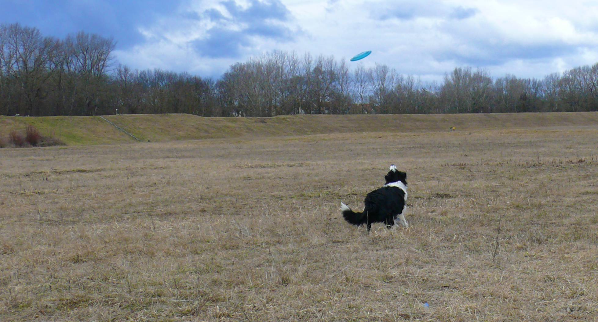 Eines Tages entdeckte ich in einer Tierhandlung eine blaue Frisbeescheibe – hundegeeignet, zahnschonend, robust.