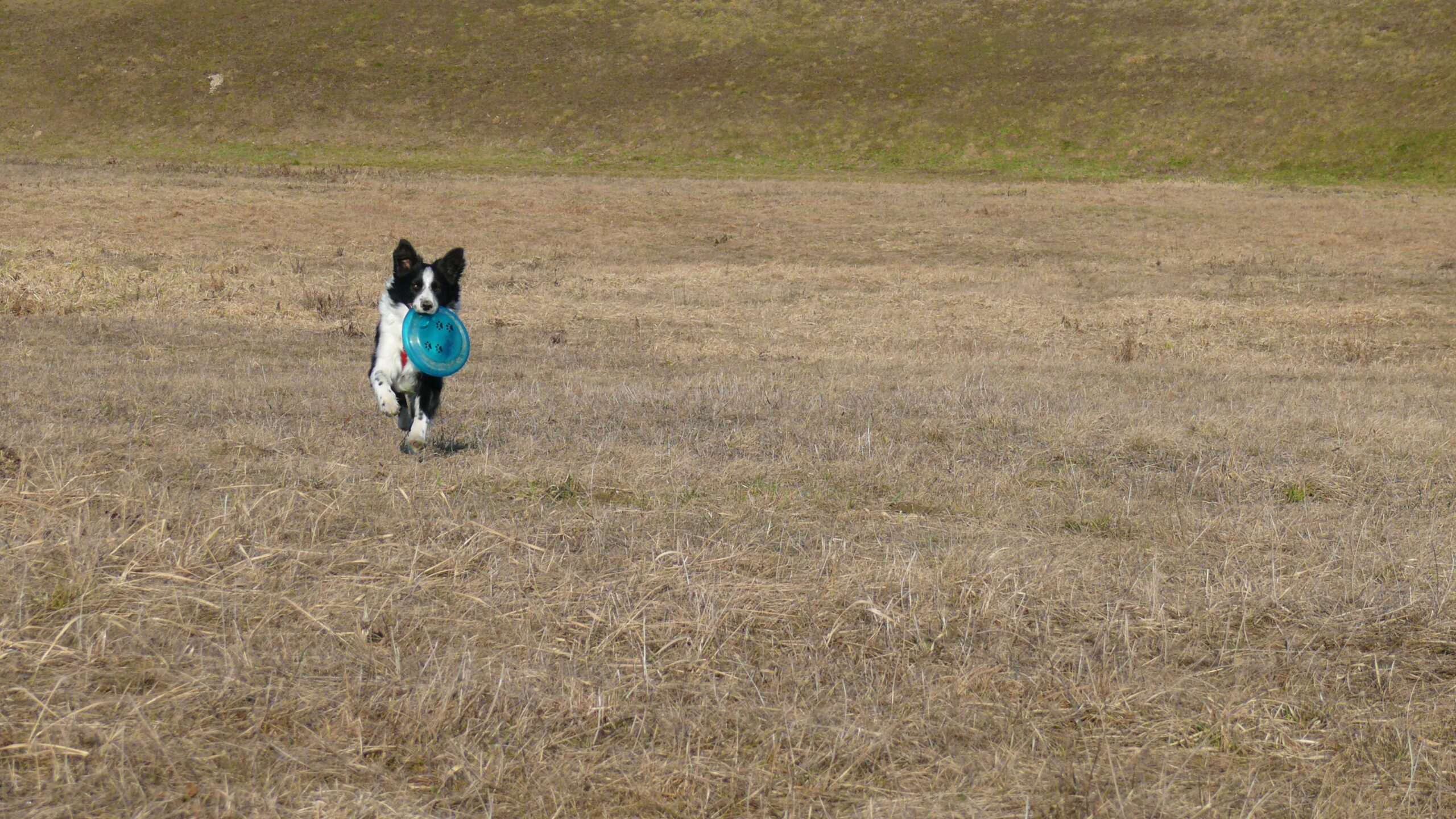 Begeistert stürmt er los – über Wiesen, Abhänge, Felder. Er verfolgt die Flugbahn dieses „UFOs“, wartet konzentriert und schnappt im perfekten Moment zu.